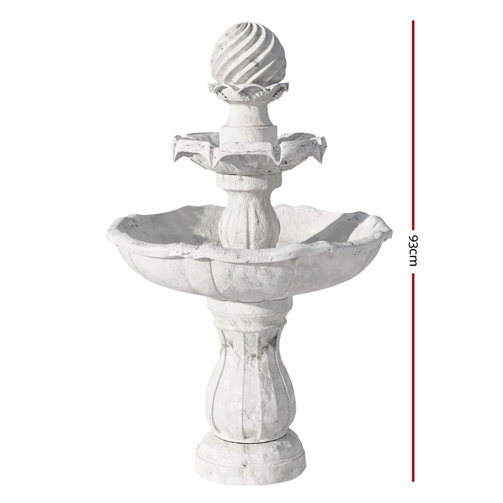 Enhance your indoor or outdoor space with our Three Tier Solar Power Fountain in a timeless ivory color. Crafted from durable polyresin, this lightweight fountain serves as an exquisite decorative piece suitable for various settings.