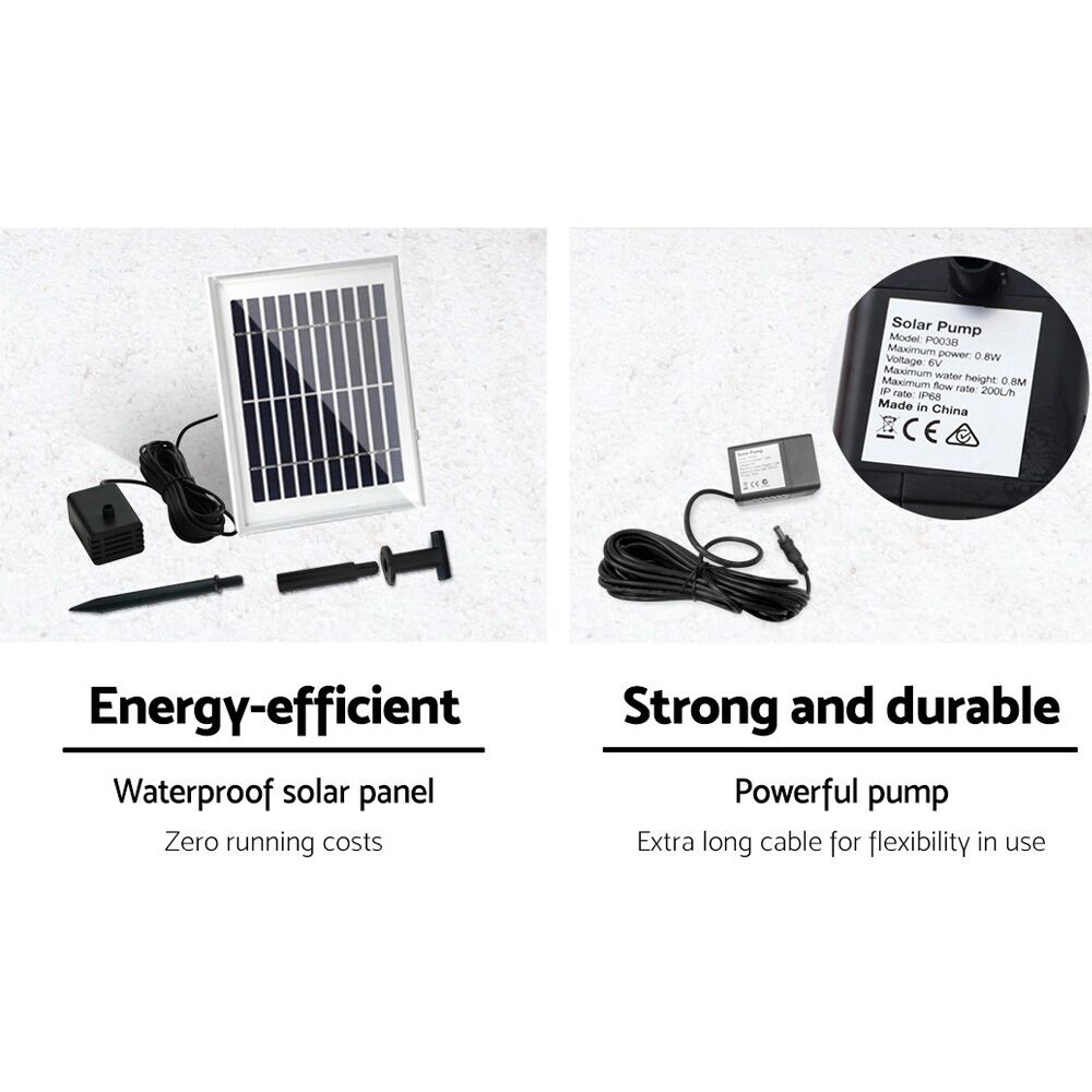 Crafted with quality resin, the fountain ensures all-weather durability, and its lightweight design makes it virtually maintenance-free. Powered solely by solar energy through a 3W polycrystalline panel, the fountain operates efficiently with the aid of a rechargeable lithium battery. Setting up the fountain is effortless, thanks to the included accessories, allowing you to enjoy its soothing flow in no time.