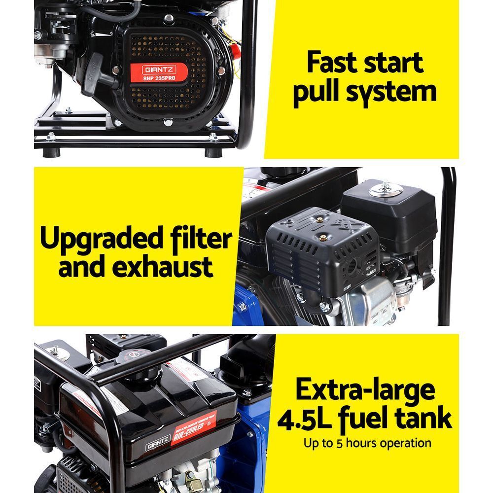 This 8hp Petrol Water Pump provides outstanding performance for general water pumping applications. Whether it is for heavy-duty cleaning, irrigating the garden or pumping out a flooded cellar, you will be amazed with the versatility and performance our monster water pump.