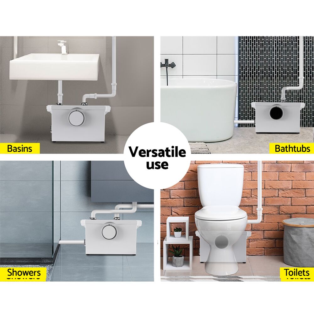Are you planning a renovation and dreaming of adding a bathroom to an unconventional space? Our Macerator Sewerage Pump is the answer, capable of pumping up to 7m vertically and 65m horizontally. With a powerful 600W motor and three inlets, you can effortlessly connect your toilet, washbasin, shower, and bathtub to create a complete bathroom where traditional drainage might be impractical or costly. This genuine commercial macerator pump operates quietly, triggered automatically by flushing, making it an ideal solution for discreet and efficient waste disposal.